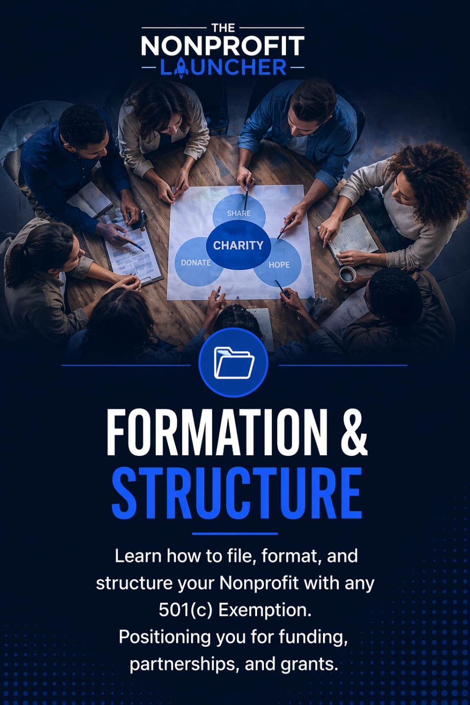 Learn how to file, format, and structure your Nonprofit with any 501(c) Exemption. Positioning you for funding, partnerships, and grants.