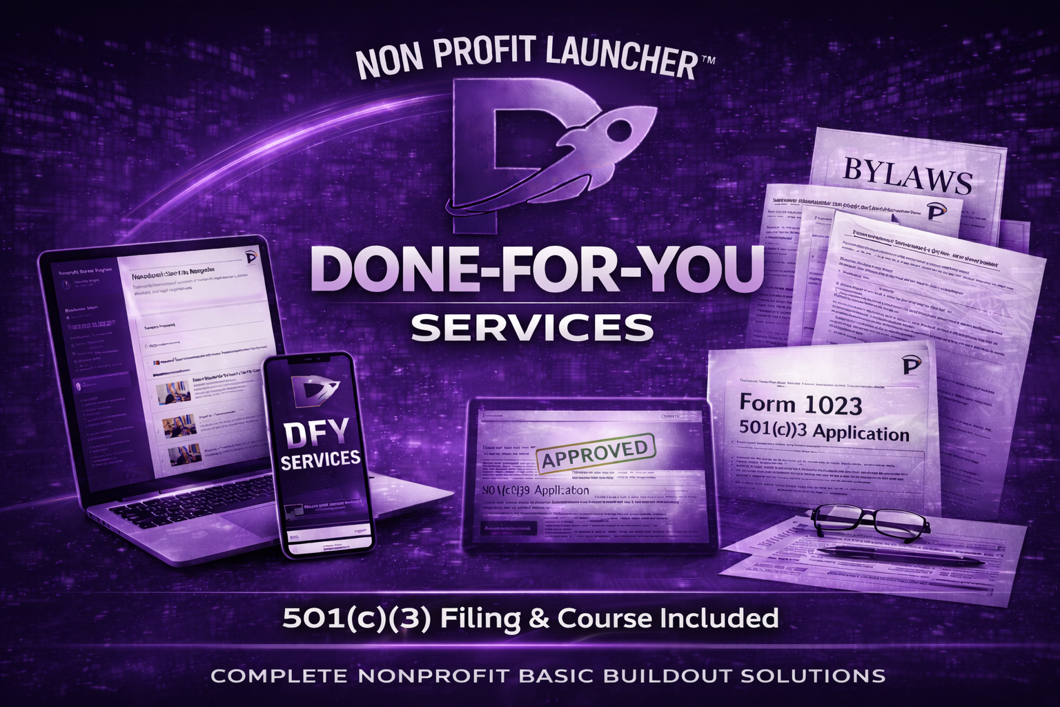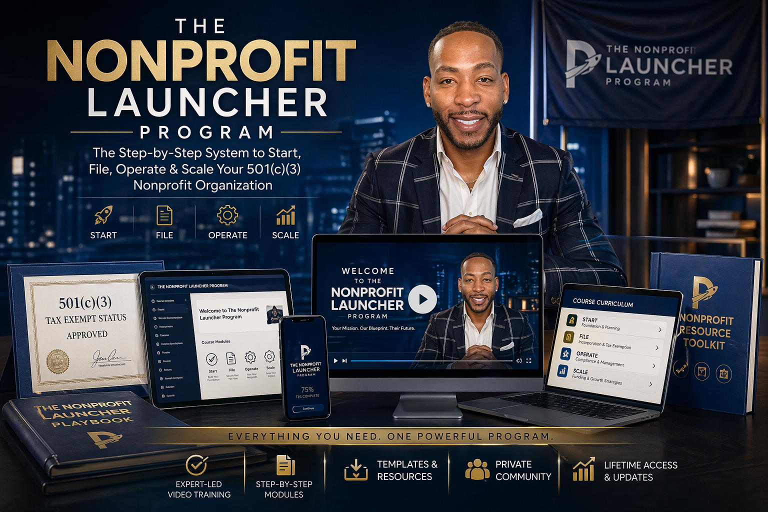 Start your nonprofit the right way—with expert guidance, step-by-step tools, and a proven system that works. The Nonprofit Launcher is your one-stop hub for launching, funding, and growing a successful 501(c)(3). No matter what course or service you choose, you’ll always get three things: