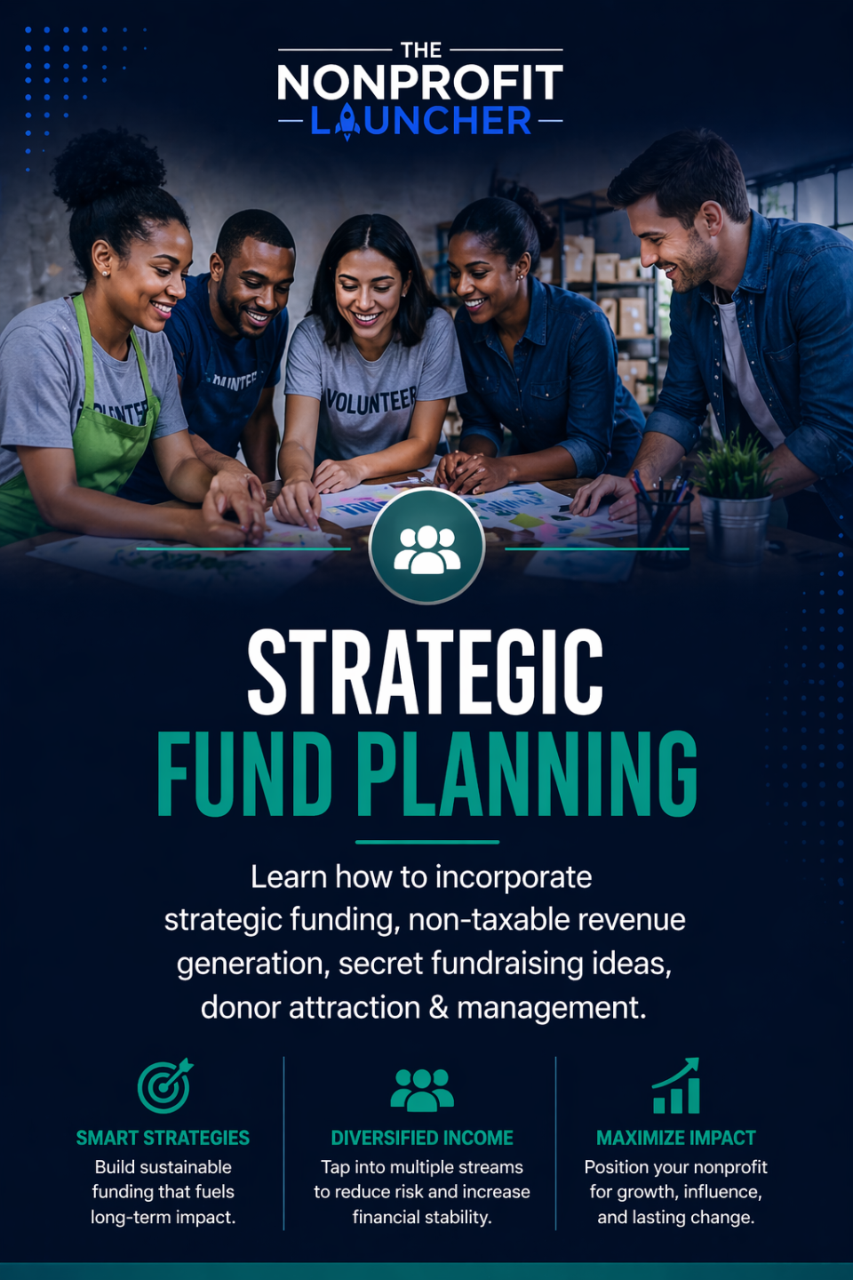 Learn how to incorporate strategic funding, non-taxable revenue generation, secret fundraising ideas, Donor attraction & Management